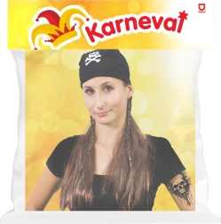 Perukas sukurtas patogiam dėvėjimui ir lengvai priežiūrai. Skarelė tvirtai laikosi ant galvos, perukas atrodo natūraliai ir papildo bet kokį pirato kostiumą. Dėl universalios dydžio perukas tinka daugumai paauglių ir suaugusiųjų.