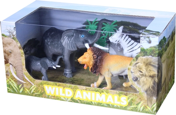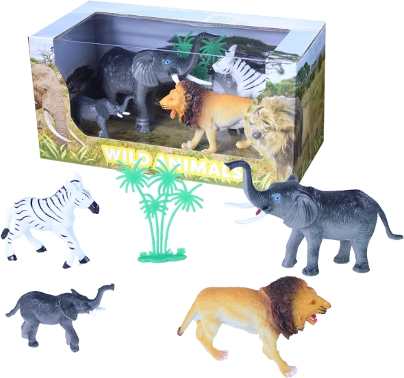 Papildykite savo namų zoologijos sodą šiuo puikiu laukinių gyvūnų rinkiniu dėžutėje. Rinkinyje yra dramblys, drambliausias, zebras, liūtas ir palma – idealiai tinka kūrybiniam žaidimui ir mokymuisi apie gamtą.