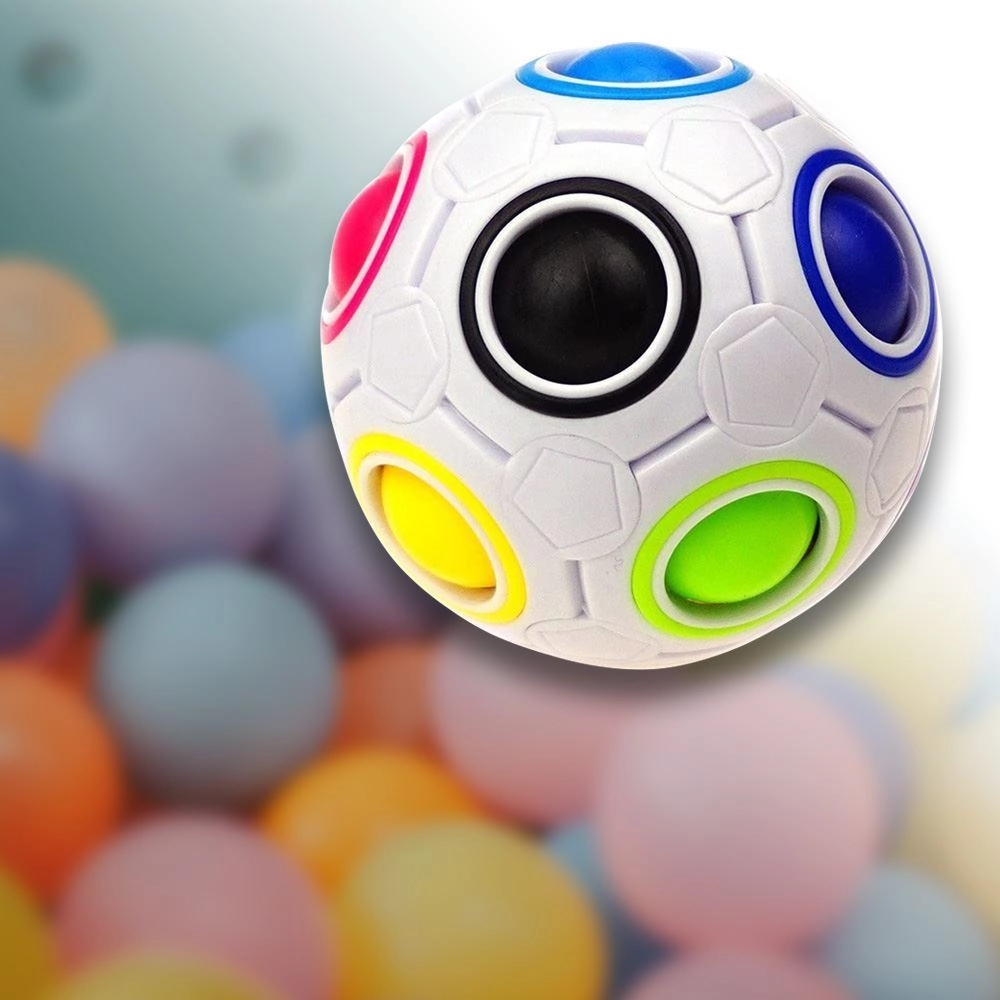Galvosūkio kamuolys Rainbow Ball – išmani ir įtraukianti dėlionė, veikianti slankiojančių galvosūkių principu. Jūsų užduotis – perkelti kamuoliukus tarp angų ir suderinti juos pagal spalvotus žiedus. Viena anga be spalvoto žiedo lieka tuščia ir tarnauja kaip laikina vieta perkėlimui.