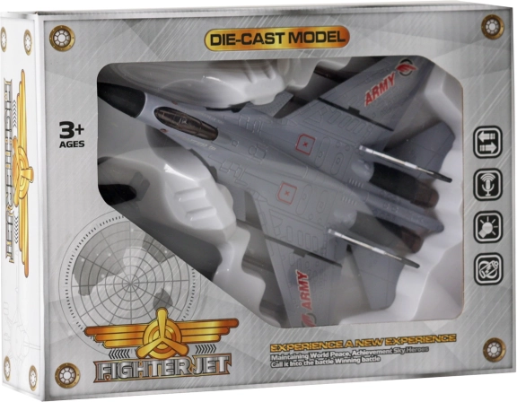 Šis detaliai išdirbtas naikintuvas siūlo šviesos ir garso efektų derinį, kuris sustiprina žaidimą ir skatina vaikų vaizduotę. Dėl atbulinio inercinio mechanizmo lėktuvas, užtempus, pats pajuda, mirksi ir skleidžia įvairius garsus.