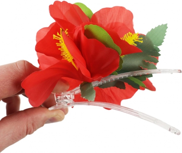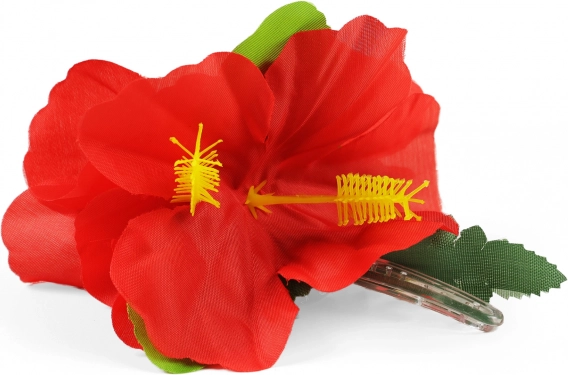 Šis gėlių plaukų segtukas atneša egzotikos tiesiai į jūsų stilių. Su jo sodriai raudonais žiedais ir žaliais lapeliais tapsite kiekvieno renginio karaliene – ar tai būtų paplūdimio vakarėlis, havajietiškas vakaras ar šventė prie baseino.