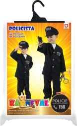 Virstkite mažaisiais policininkais su šiuo puikiu kostiumu, kuriame yra bliuzonas su užrašu POLICIJA, kelnės ir kepurė. Idealiai tinka 4–6 metų vaikams.