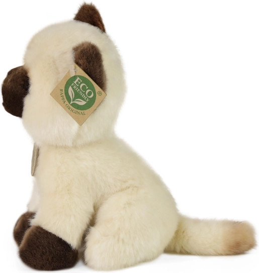 Pliušinis Siamo katinas yra rankomis siūtas iš švelnaus pliušo ir atrodo tarsi tikras. Šis gaminys pradžiugins visus pliušinių žaislų mylėtojus ir pagamintas iš ekologiškų medžiagų.
