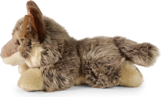 Švelnutis gulintis vilkas atrodo lyg gyvas dėl detalių bruožų ir kokybiškos medžiagos. Užpildas iš perdirbtų PET butelių pojūčiu neatskiriamas nuo klasikinio, yra saugus ir sertifikuotas net patiems mažiausiems vaikams.