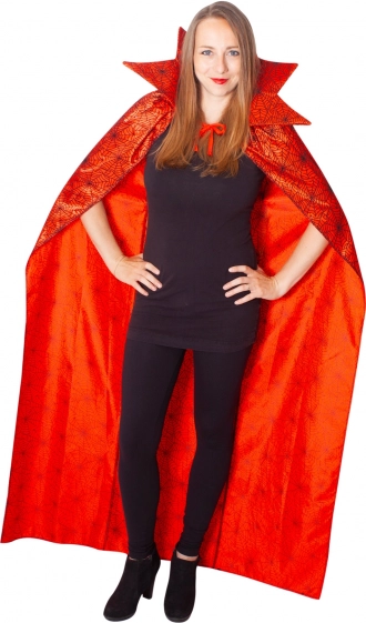 Akimirksniu tapkite paslaptinga persona – raudonas apsiaustas su voratinklio raštu ir aukšta apykakle yra puikus pasirinkimas Helovinui, teminiams vakarėliams, teatro pasirodymams ir kaukių baliams. Blizgus medžiagos efektas ir ryški spalva traukia dėmesį ir pabrėžia jūsų kostiumą.