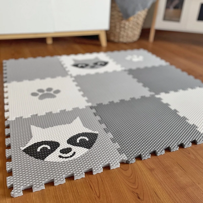 Šis žaidimų kilimėlis su meškėno ir pėdsakų motyvais pavers bet kurį vaiko kambarį saugia ir minkšta vieta žaisti. Paprastas ir lengvas surinkimas dėl susegamų (interlock) kraštų ir patvarios medžiagos.