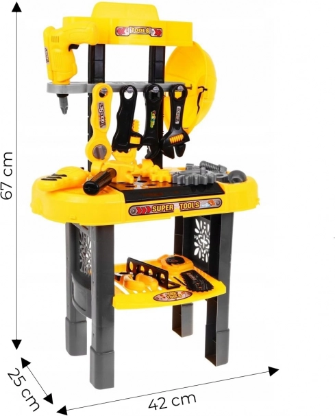 Ši vaikiška dirbtuvė pasižymi realistiška išvaizda ir turi viską, ko mažiesiems inžinieriams reikia žaidimui. Su šia dirbtuve vaikai gali lavinti rankinius įgūdžius, vaizduotę ir problemų sprendimo gebėjimus smagiu būdu. Tai puiki dovana, kuri užtikrins valandas kūrybiško žaidimo ir ugdomosios veiklos.