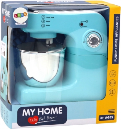 Linksmas vaikiškas virtuvinis kombainas, kuris pavers vaidinimą „virimą“ tikra patirtimi. Siūlo 3 keičiamus antgalius plakimui ir minkymui, dubuo rinkinyje, paprastą valdymą ON sukamu mygtuku ir šviesos indikatorių. Stilinga turkio spalva primena tikrą prietaisą ir lavina vaikų kūrybiškumą bei smulkiąją motoriką.