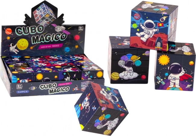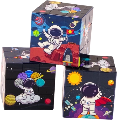 Maginė kubas sukurtas su linksmomis spalvomis ir draugiškomis iliustracijomis, kad būtų patrauklus ir įdomus mažiesiems astronomijos gerbėjams. Vaikų užduotis – sudėti paveikslėlį su motyvais, tokiais kaip astronautai ir planetos, kas skatina jų kūrybiškumą.