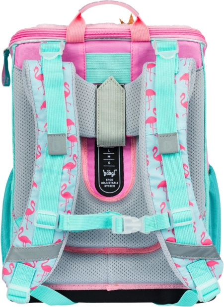 Mokyklinis rinkinys Zippy Flamingas yra idealus pasirinkimas vaikams ir tėvams, ieškantiems kokybės, komforto ir stiliaus derinio. Ergonominė kuprinė aprūpinta slankiąja nugaros sistema ERGO ADJUSTABLE SYSTEM, kuri leidžia optimaliai sureguliuoti diržus pagal vaiko ūgį. Kuprinės korpusas pagamintas iš tvirto, vandeniui atsparaus audinio, išlaikančio stabilią formą, ir sveria vos 1 100 g.