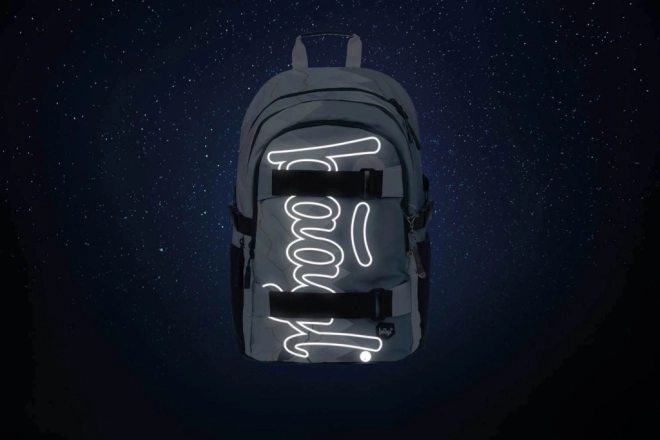 BAAGL Skate Moon kuprinė turi pilnai reguliuojamas pečių, krūtinės ir šonines kompresines juostas, leidžiančias optimaliai pritaikyti prie kūno. Mažas svoris ir atšvaitiniai elementai užtikrina patogumą ir saugumą kasdien nešiojant.