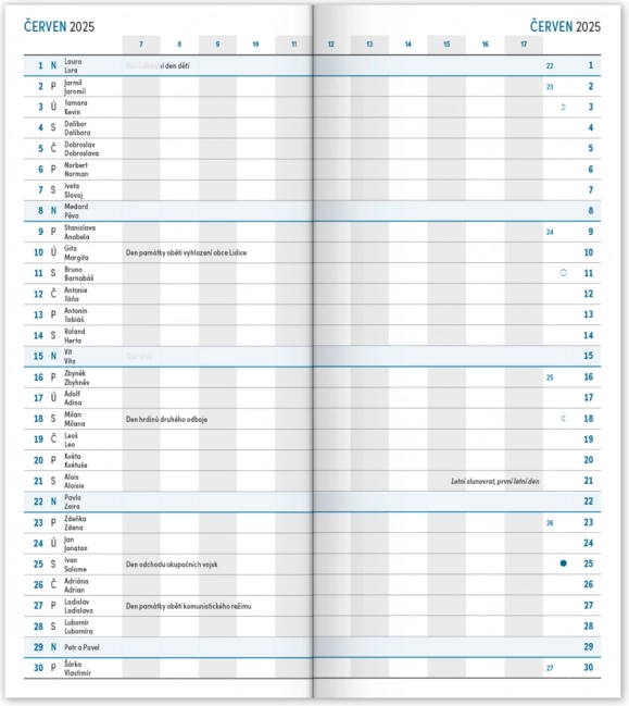 Čekiškas kalendorių apima:
