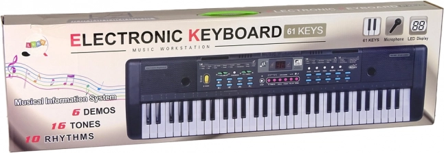 Ugdykite vaiko muzikinį talentą su šiuo vaikišku elektroniniu pianinu, turinčiu 61 klavišą, integruotą mikrofoną ir natų stovą. Jame yra 6 demo kūriniai, 16 tonų, 10 ritmų, 8 būgnų garsai, 2 mokymosi režimai, įrašymas, garsumo ir tempo reguliavimas bei įspūdingi LED žibintai – idealiai tinka žaismingam mokymuisi ir namų koncertams.