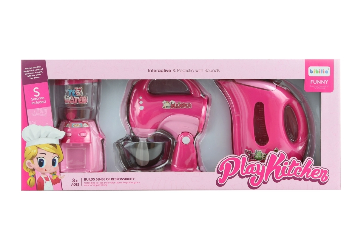Interaktyvus vaikų virtuvės prietaisų rinkinys mažiesiems virėjams siūlo realistišką žaidimą su maišytuvu, virduliu ir plaktuvu. Garsai ir šviesos efektai lavina vaikų pojūčius ir atsakomybę nuo 3 metų amžiaus.