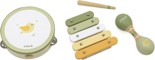 PolarB vaikų muzikos rinkinys siūlo tris spalvingus ir saugius instrumentus mažiesiems muzikos entuziastams. Rinkinyje yra tambūrinas, ksilofonas ir marakasai, kurie skatina klausos gebėjimų ir akių-rankų koordinacijos vystymąsi.