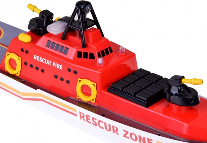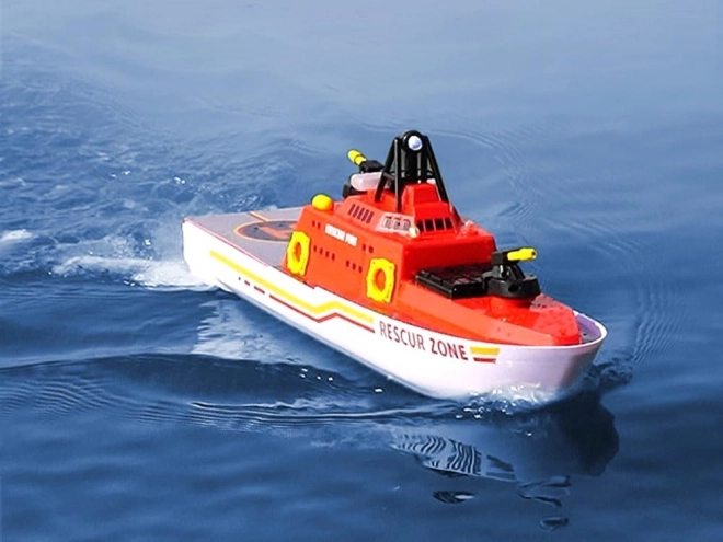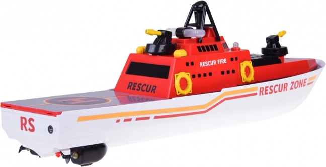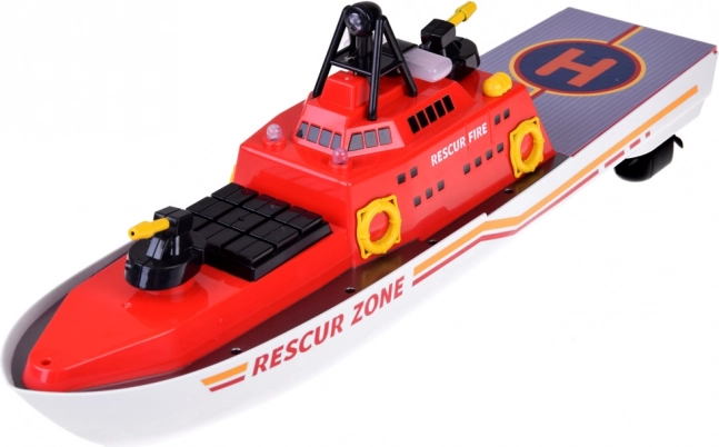 Gelbėjimo valtis taip pat turi žibintus, todėl puikiai tinka žaisti prieblandoje. Rinkinyje yra valtis, nuotolinio valdymo pultas, įkroviklis ir įkraunama baterija. Žaislas pagamintas iš patvaraus plastiko, užtikrinančio ilgą tarnavimo laiką.