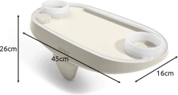 Sukurta maksimaliam praktiškumui ir saugumui: 2 gėrimų laikikliai patikimai laiko puodelius, taures ir butelius be apsivertimo rizikos, o plotas planšetei ar išmaniajam telefonui leidžia patogiai žiūrėti mėgstamą turinį ar valdyti muziką. Maitinimą užtikrina 2 CR2032 baterijos (įtrauktos į komplektą), todėl nereikia laidų ar sudėtingos instaliacijos.