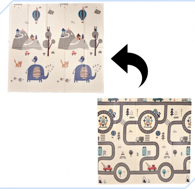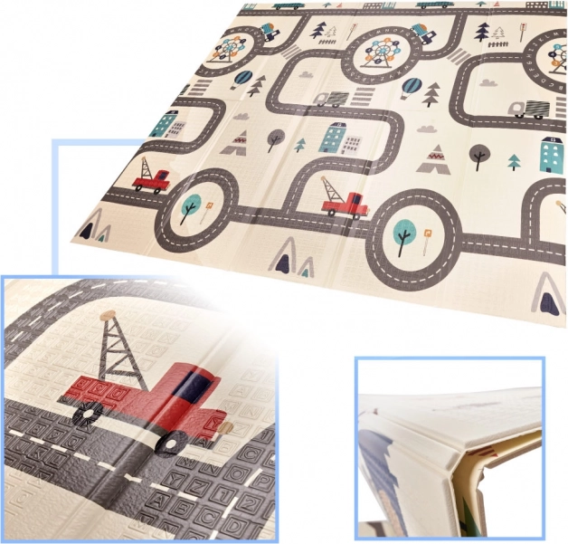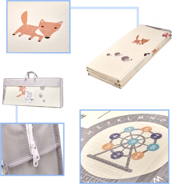 Praktiškas XPE putų žaidimų kilimėlis vaikams yra dvipusis, sulankstomas ir siūlo erdvią bei minkštą vietą žaidimams ir pirmiesiems žingsniams. Vienoje pusėje pavaizduoti miško gyvūnai ir kalvelės, kitoje – keliai ir miestas žaisti su mašinėlėmis. Lengvai valomas, izoliuoja nuo šalčio ir dėl 1 cm storio suteikia daugiau komforto bei saugumo.