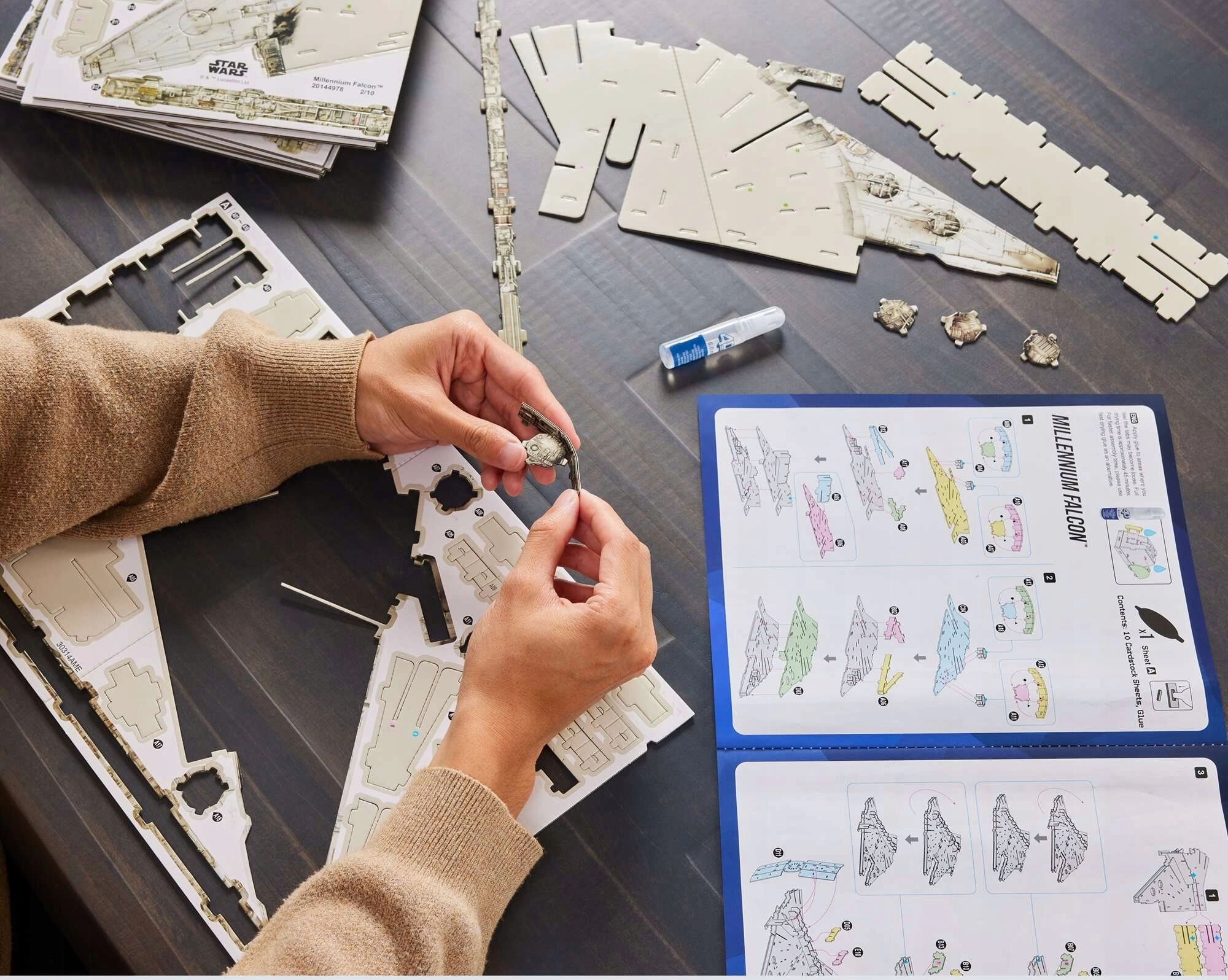Iš lakštų lengvai išimsite 223 detales, pridėti klijai ir aiški instrukcija padės surinkti modelį be specialių įrankių.
