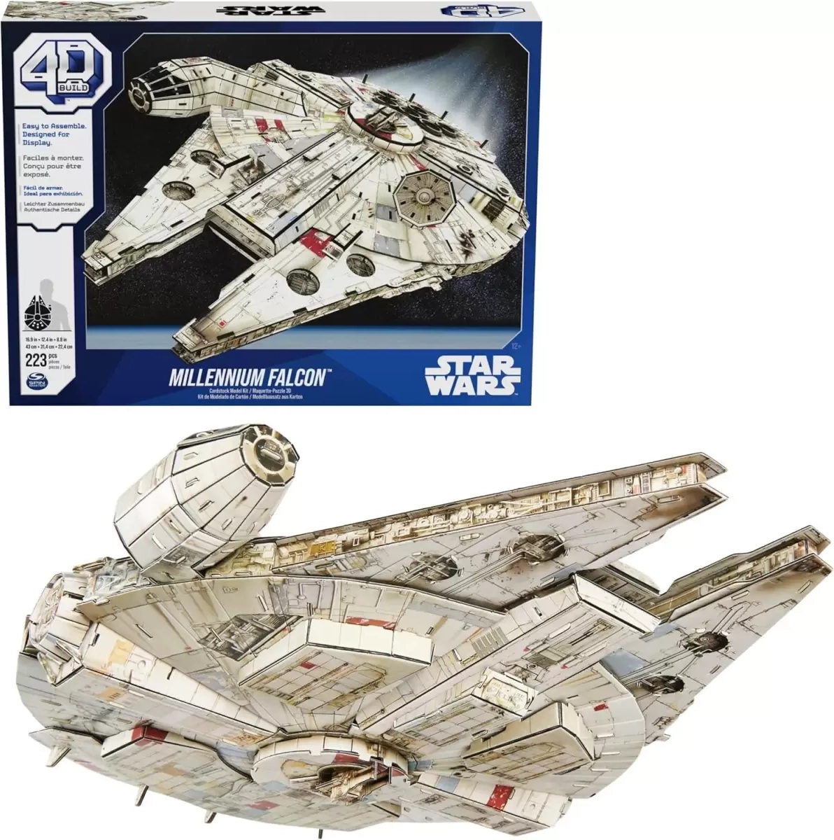 Sukonstruokite savo Millennium Falcon ir eksponuokite jį ant stovo su STAR WARS ženklu. 4D Build rinkinys siūlo filmo lygio detales, 223 išimamus detales ant 10 lakštų, pridėtus klijus ir stabilų pagrindą. Modelis, kurio matmenys 43 × 31,4 × 22,4 cm, idealiai tinka kaip kolekcinė dekoracija kambariui, žaidimų erdvei ar biurui ir puiki dovana gerbėjams nuo 14 metų.