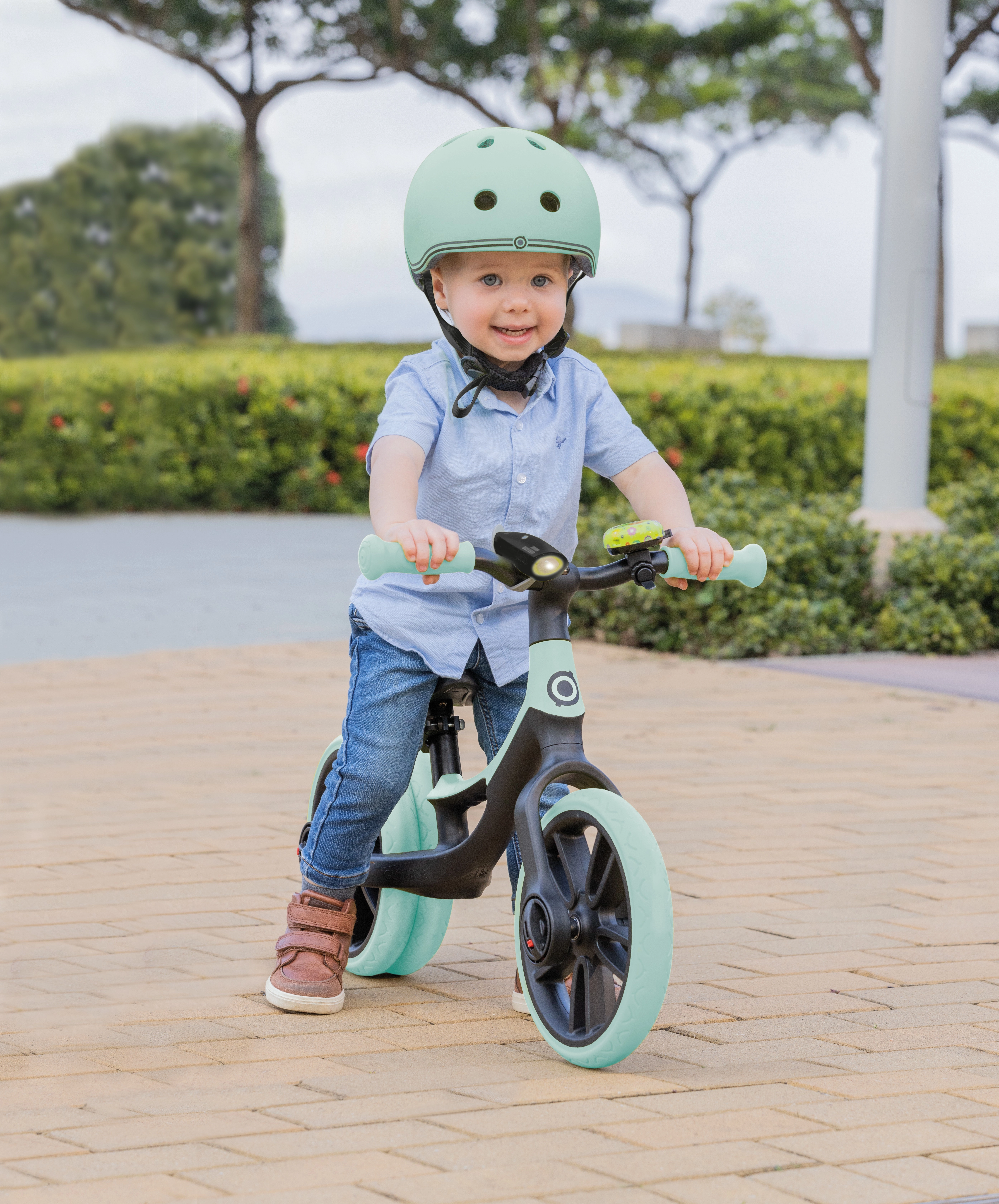 Stilingas mėtų spalvos GLOBBER skambutis vaikų dviračiams ir paspirtukams leidžia vaikams skambinti nykščiu ir laikyti abi rankas ant vairo. Jis yra lengvas, kompaktiškas ir dėl patrauklių motyvų puikiai atrodo – idealus vaikams nuo 3 metų.