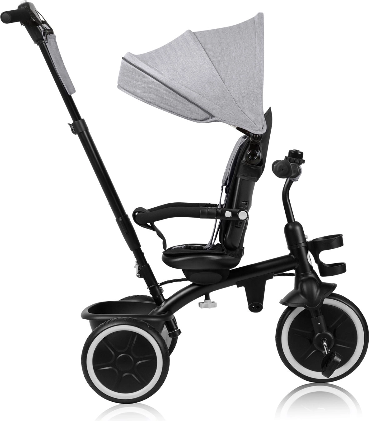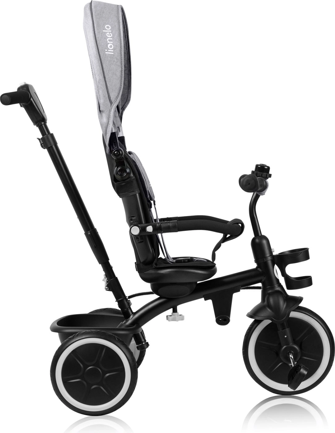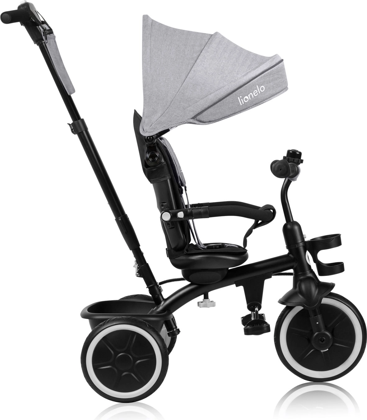 Triratukas LIONELO Berry Grey Stone auga kartu su jūsų vaiku – nuo pirmųjų pasivaikščiojimų su tėvų valdymu iki savarankiško važiavimo. 360° pasukama sėdynė leidžia nustatyti padėtį pagal arba prieš važiavimo kryptį, o reguliuojamo aukščio rankena užtikrina patogų valdymą kiekvienam tėvui. Dėl PU ratų su guminiu sluoksniu nereikia bijoti pradūrimų, o važiavimas yra tylus ir tolygus.
