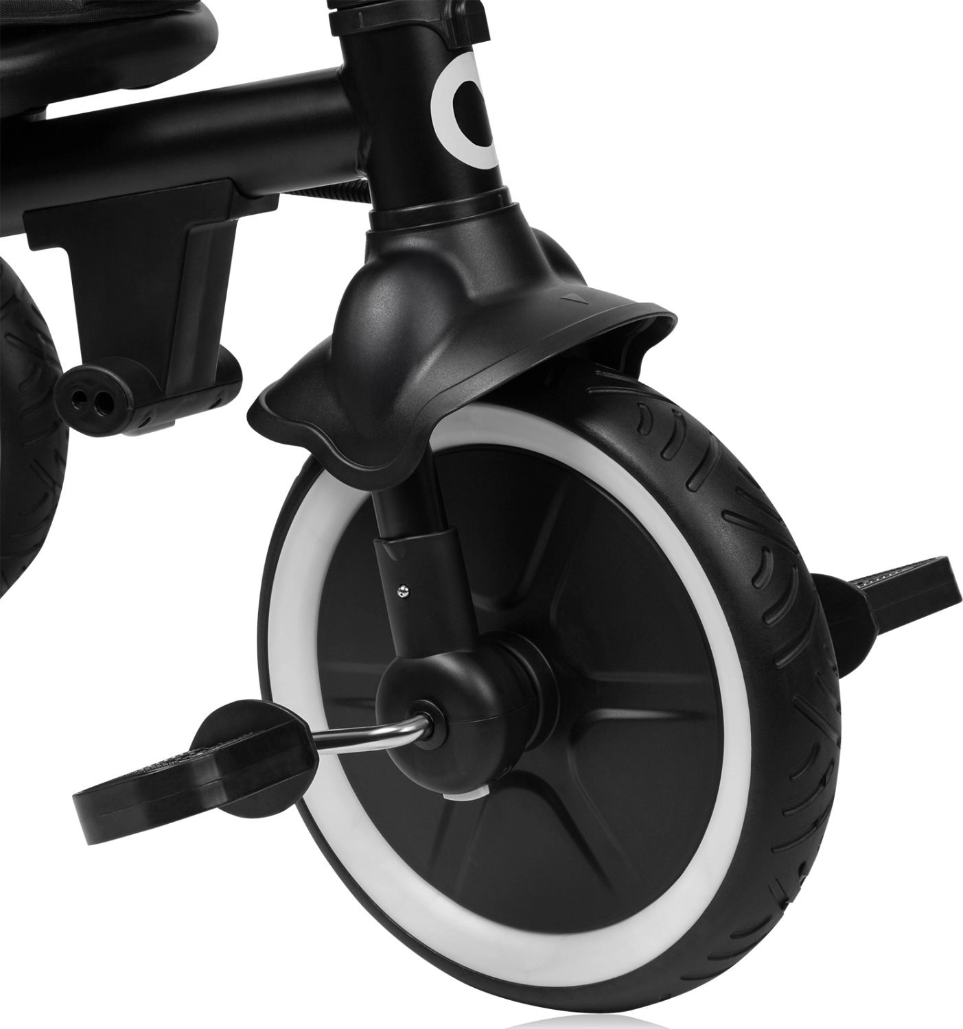 Saugumas – pirmoje vietoje: 3 taškų saugos diržai, apsauginė juosta aplink sėdynę ir priekinio rato gaubtas saugo vaiką važiavimo metu. Praktiška įranga apima spragtelėjimu sulankstomą konstrukciją be įrankių, pedalus su pakojų funkcija pavargusioms kojytėms pailsėti ir patogų nešimą dėl integruotos rankenos.