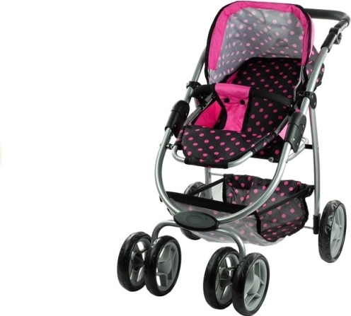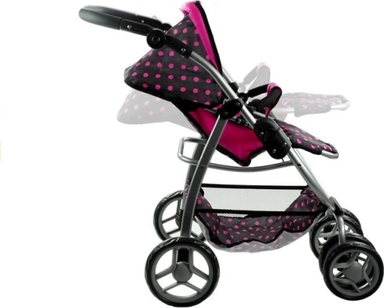 Alice 2-i-1 vežimėlis juodai rožinio dizaino dera stilių ir funkcionalumą. Jis sukurtas taip, kad atrodytų kaip tikras vežimėlis, kas skatina mažąsias mamas žaidžiant ugdyti atsakomybę ir empatiją. Perjungimas tarp gilaus lopšio ir sportinės sėdynės suteikia daugiau pramogų ir lavina vaikų tarpasmeninius įgūdžius, vaizduotę ir kūrybiškumą.
