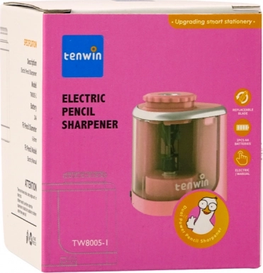 Rožinis elektrinis TENWIN drožtukas yra praktiškas pagalbininkas moksleiviams, studentams, menininkams ir biurui. Jis skirtas pieštukams ir pastelinėms kreidelėms, kurių skersmuo 6–8 mm, ir užtikrina tolygų, lygų galandinimą su minimaliomis pastangomis. Skaidrus konteineris leidžia lengvai stebėti užpildymą, o dangtelių saugos užraktas apsaugo nuo atsitiktinio drožlių išbyrėjimo.