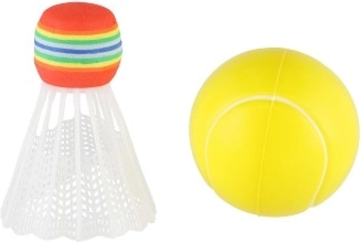 Rinkinyje yra kamuoliukas ir spalvotas krepšelis, todėl jis puikiai tinka soft tenisui ar badmintonui.