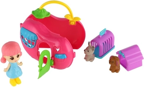 Mielą lėlę, šuniuką ir triušiuką papildo būdelės ir pernešimo dėžutė, kurios suteikia vaikams gausių žaidimo scenarijų ir lavina jų vaizduotę bei smulkiąją motoriką.