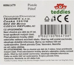 Smagus vaikiškas pistoletas, veikiantis inerciniu principu, todėl saugus be šovinių. Skleidžia tik realistišką inercinio mechanizmo garsą, kuris užtikrina daug veiksmo ir žaidimų be netvarkos. Kompaktiški 18 × 12 cm matmenys puikiai tinka vaiko rankai. Tinka nuo 3 metų.