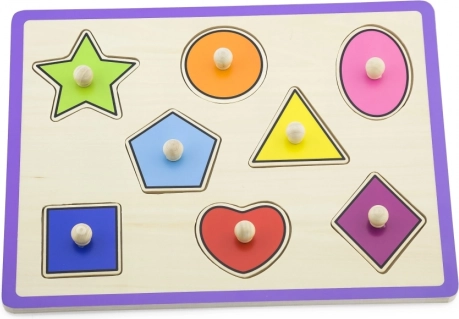 Linksmas ir interaktyvus žaislas, turintis 8 ryškiaspalves detales įvairių formų, kiekviena su laikikliu, kad mažoms rankytėms būtų lengviau suimti. Žaislas pagamintas iš kokybiškos medienos, todėl yra ilgaamžis. Naudotos medžiagos ir dažai yra ekologiški ir visiškai saugūs vaikams.