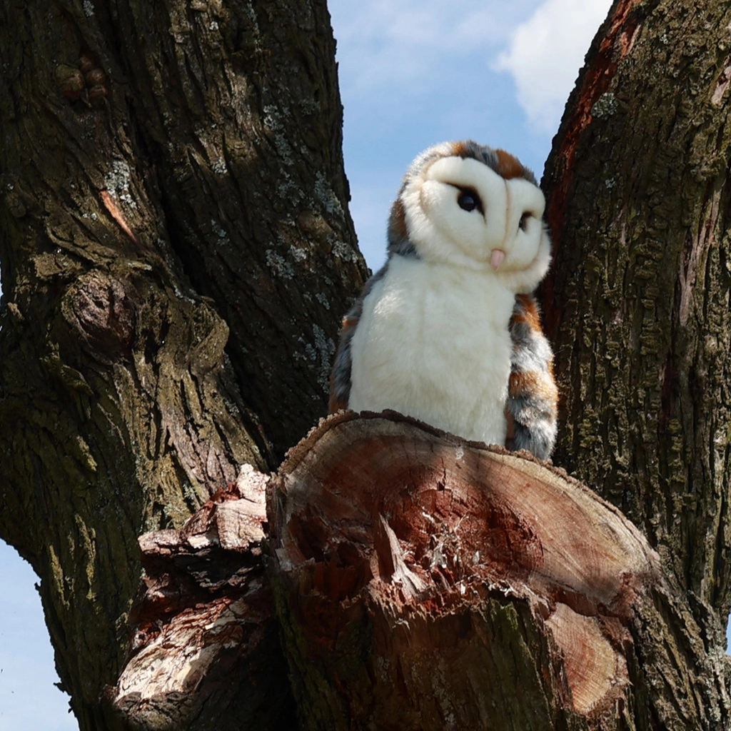 Ši pelėda sukurta taip, kad primintų tikrą barn owl pelėdą su detaliais spalviniais raštais.