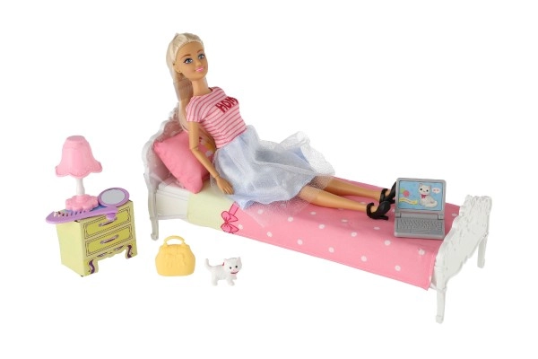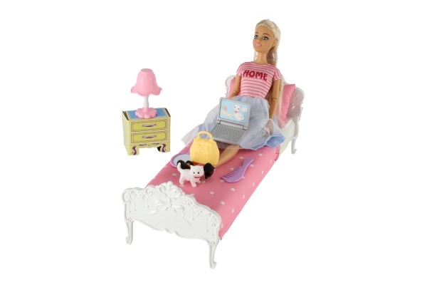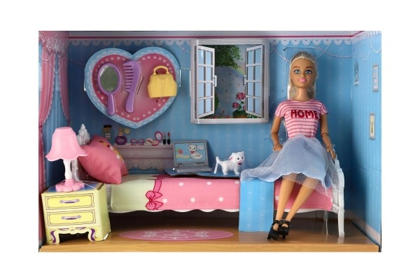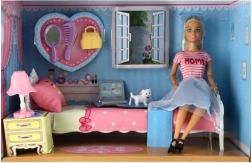 Rinkinį sudaro lovelė, tualetinis staliukas, lempa ir naminiai gyvūnėliai pilnam žaidimui.
