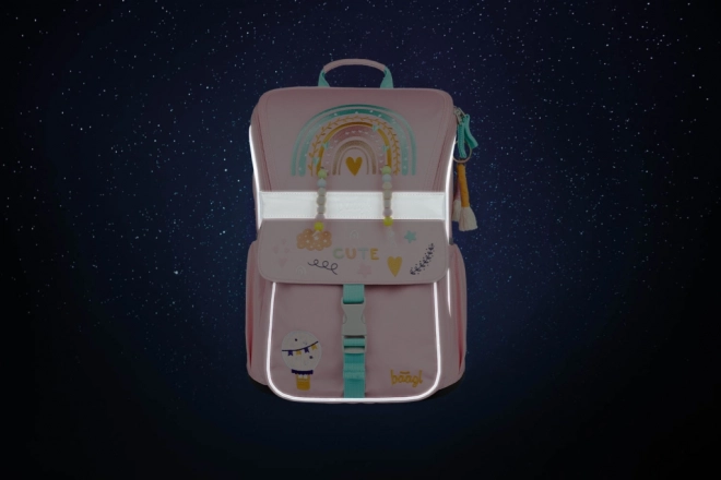 Kuprinė BAAGL Zippy Vaivorykštė rožinė sukurta pradinukams nuo 1 klasės. Ji siūlo ergonomiškai suformuotą nugarą ir visiškai reguliuojamus pečių, krūtinės bei šoninius kompresinius diržus tobulam prisitaikymui prie kūno. Lengva, bet tvirta konstrukcija išlaiko stabilų formą, vandeniui atspari medžiaga saugo vadovėlius, o tvirtas dugnas leidžia kuprinei stovėti savarankiškai.