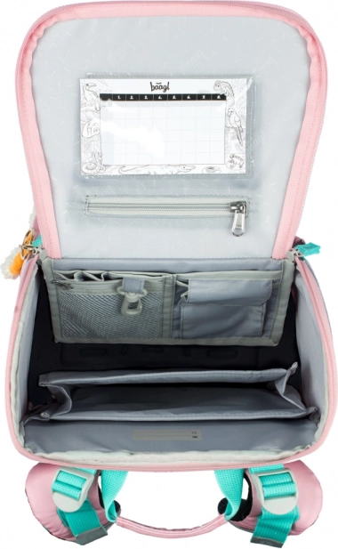 Dėl naujos išsiverčiančios sistemos vaikai lengvai pasieks priemones tiesiai nuo suolo. Viduje yra permatoma kišenė tvarkaraščiui ir išmanus organizatorius su gumele tolygiam svorio paskirstymui. Šoninės kišenės talpina gertuvę, o priekinė izoliuota kišenė su sagtimi idealiai tinka užkandžiams.