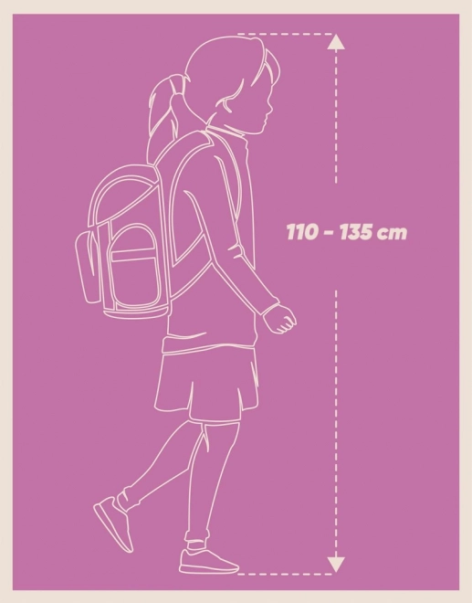 Visiškai reguliuojama nugaros sistema leidžia tiksliai pritaikyti diržus pagal vaiko ūgį. Ergonomiškos formos nugara ir krūtinės diržas užtikrina stabilumą ir komfortą visą dieną.