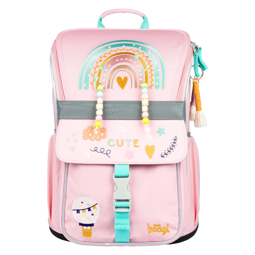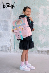 Mokyklinis rinkinys BAAGL Zippy Vaivorykštė rožinis – puikus pasirinkimas pirmokams ir jaunesniems moksleiviams. Ergonominė aktovė su sutvirtintu korpusu išlaiko stabilią formą, naujai sukurta atverčiamo atidarymo sistema suteikia greitą prieigą nuo suolo, o praktiškas vidinis organizatorius su gumyte padeda tolygiai paskirstyti svorį. Lengvas dizainas, atspindintys elementai ir patvarios, vandeniui atsparios medžiagos užtikrina komfortą ir saugumą kiekvieną mokyklos dieną.