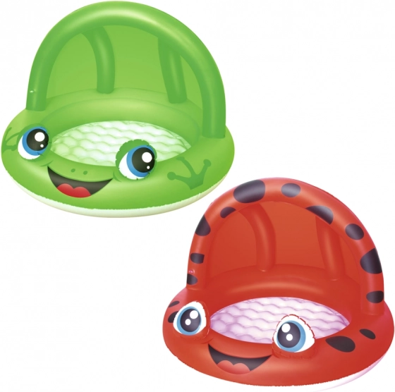 Mielas pripučiamas baseinėlis patiems mažiausiems su stogeliu nuo saulės suteikia saugų atsivėsinimą sode. Dėl kompaktiškų matmenų 97 × 66 cm ir 26 l talpos jis idealiai tinka mažyliams. Galima rinktis iš dviejų linksmų variantų – varlė ir boružėlė. Greitai priežiūrai ir ramybei pridedama remonto lopelė.