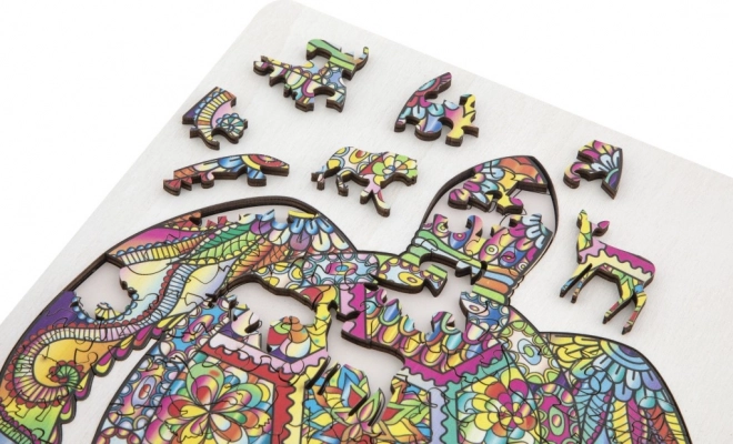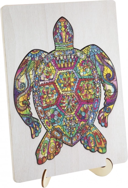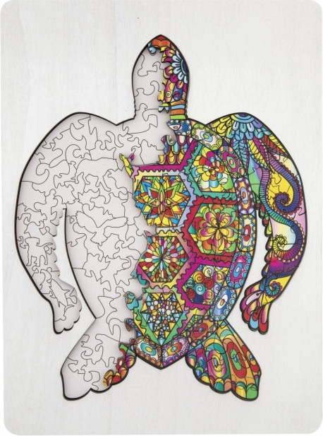Medinė kontūrinė dėlionė vėžlio formos su įvairiai suformuotomis dalimis – idealiai tinka vaikams ir suaugusiesiems. Yra detalių gyvūnų ir daiktų formų, kas prideda patrauklumo ir žaismingumo.