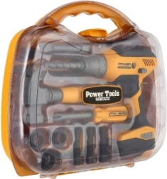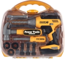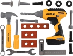 Vaikiškų įrankių rinkinys su grąžtu – puiki priemonė mažiesiems meistrams, norintiems išbandyti darbą su įrankiais kaip suaugusieji. Jis laikomas praktiškame plastikiniame lagaminėlyje, todėl lengva nešti ir palaikyti tvarką. Maitinamas baterijomis, kas suteikia žaislams tikroviškumo – tai ypač patiks vaikams, mėgstantiems garso efektus.