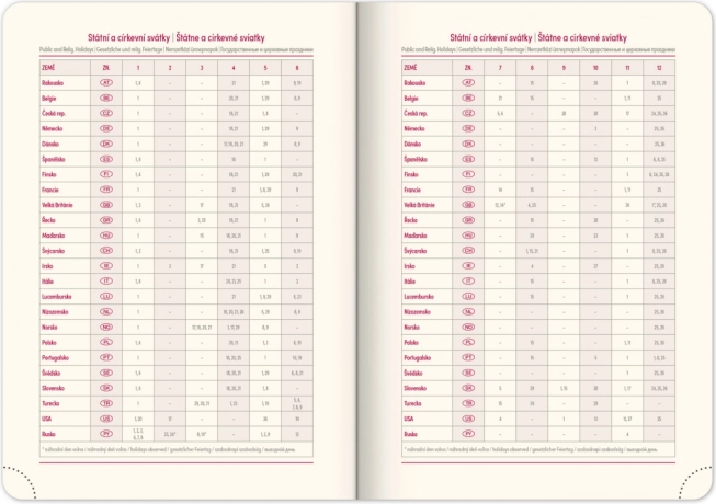 - Įtrauktos Čekijos ir Slovakijos Respublikos šventės bei tarptautinės šventės.