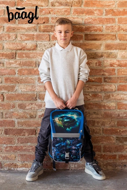 Mokyklinis rinkinys Baagl Zippy lenktyninis automobilis pirmaisiais mokyklos metais apima ergonominę kuprinę su slankiuoju ERGO ADJUSTABLE SYSTEM, vieno aukšto penalą ir maišelį su kišene. Kuprinė turi atverčiamą uždarymo sistemą, praktišką organizatorių, atšvaitinius elementus ir vandeniui atsparią medžiagą kasdieniam patikimumui.