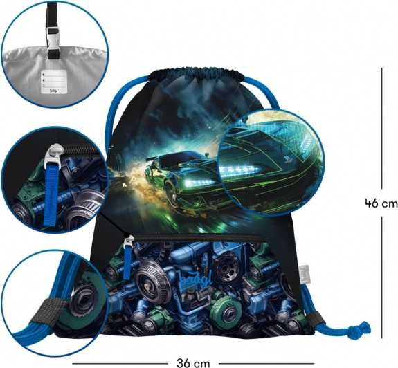 Praktiškas ir stilingas rinkinys su lenktyninio automobilio motyvu palengvins kiekvieną mokyklos dieną. Ergonomiškai suformuota kuprinė su slankiąja nugaros sistema ERGO ADJUSTABLE SYSTEM tiksliai prisitaiko prie vaiko ūgio, o reguliuojami pečių, krūtinės ir šoniniai kompresiniai dirželiai užtikrina komfortą ir taisyklingą apkrovos pasiskirstymą.
