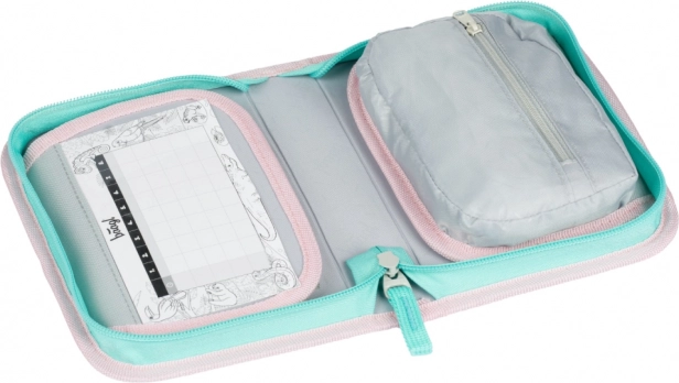 Praktiškas ir modernus penalas rožiniuose pasteliniuose tonuose su vaivorykštės motyvu pradžiugins mokinius ir studentus. Vieno skyriaus konstrukcija su dviem atvartais leidžia aiškiai susitvarkyti ir greitai pasiekti visas priemones. Patvarios medžiagos ir YKK užtrauktukas užtikrina ilgaamžiškumą kasdien naudojant.