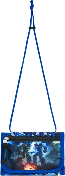 Dizainas su futuristiniais robotais mėlynuose atspalviuose patraukia akį iš pirmo žvilgsnio. Skaidri tinklinė dalis ir vidinės pertvaros padeda tvarkingai laikyti korteles bei dokumentus, o virvelė leidžia patogiai nešioti piniginę ant kaklo.