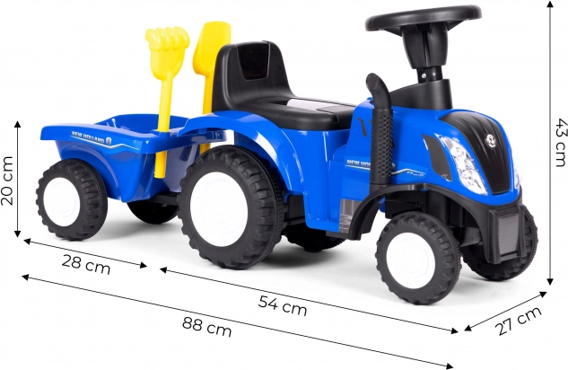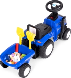 Vaikiškas stumdukas traktorius su priekaba, interaktyvus vairas ir garsai NEW HOLLAND