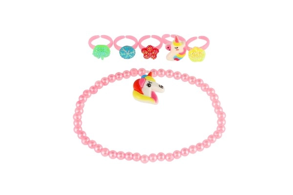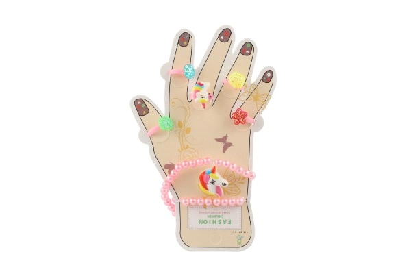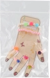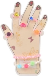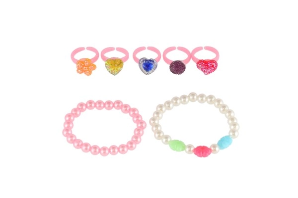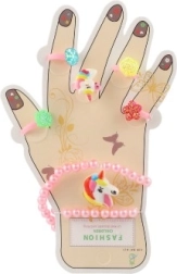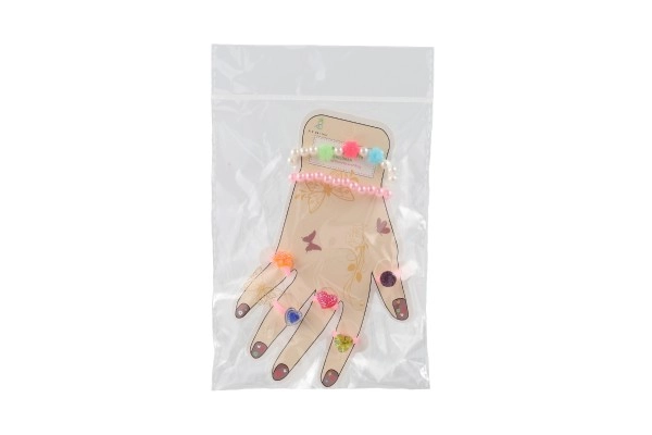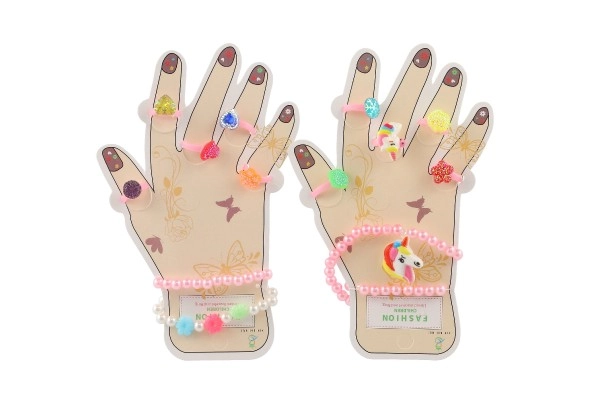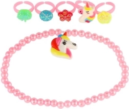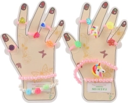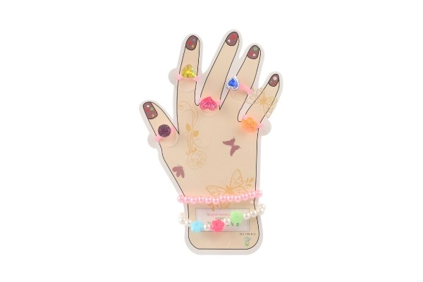 Šis žavingas aksesuarų rinkinys suteikia vaikams spalvų ir fantazijos džiaugsmo. Plastikiniai žiedukai su širdelių, gėlyčių ar blizgių akmenėlių motyvais ir elastingos apyrankės lengvai užsimauna ir maloniai nešiojasi. Puikiai tinka persirengimams, vaikų kampeliams ir kaip nedidelė dovana.