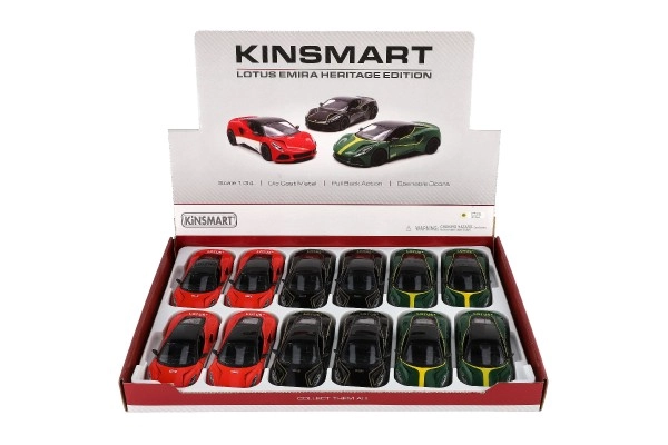 Kinsmart LOTUS Emira 1:38 mastelio automobilio modelis išsiskiria realistišku atlikimu ir dėmesiu detalėms. Metalinis kėbulas kartu su plastikinėmis dalimis užtikrina patvarumą, o atbulinės eigos įtempimas suteikia smagių įspūdžių važiuojant. Atsidarančios durelės leidžia pažvelgti į saloną ir sustiprina autentišką patirtį.